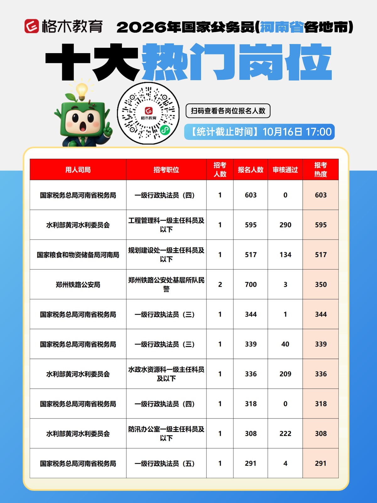 2026国考报名人数:河南岗位21764人报名/4395人审核通过【截至10月16日17时】