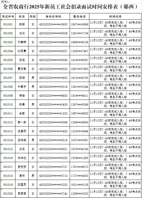 全省农商行2025年新员工社会招录面试工作定于11月15日。每位考生参加面试的具体时间由各市县农商行根据考生参加资格审查时间予以确定(详见附件)。