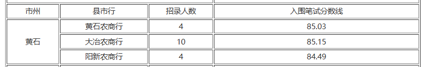 2025黄石农商行入围笔试分数线公告汇总