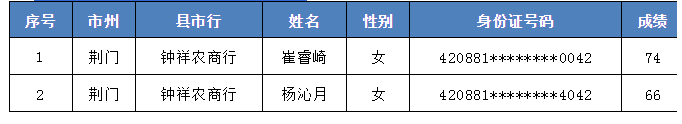 钟祥农商行2025年新员工社会招录入围分数线公告