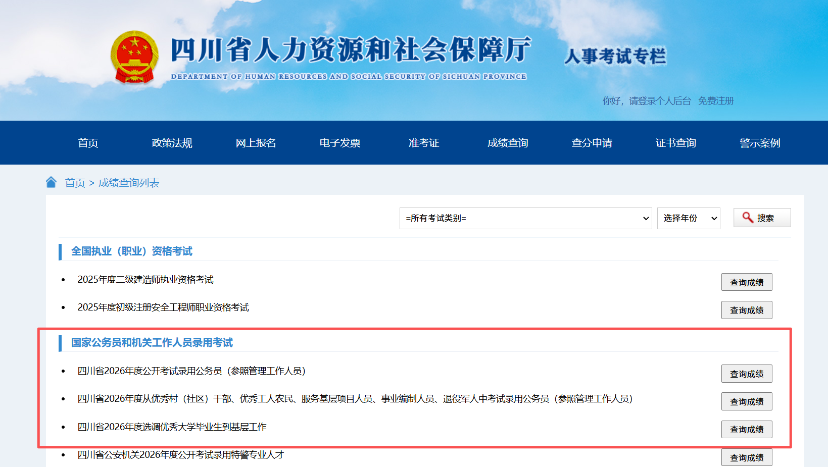 2026四川省考笔试成绩查询入口开通啦!快查成绩