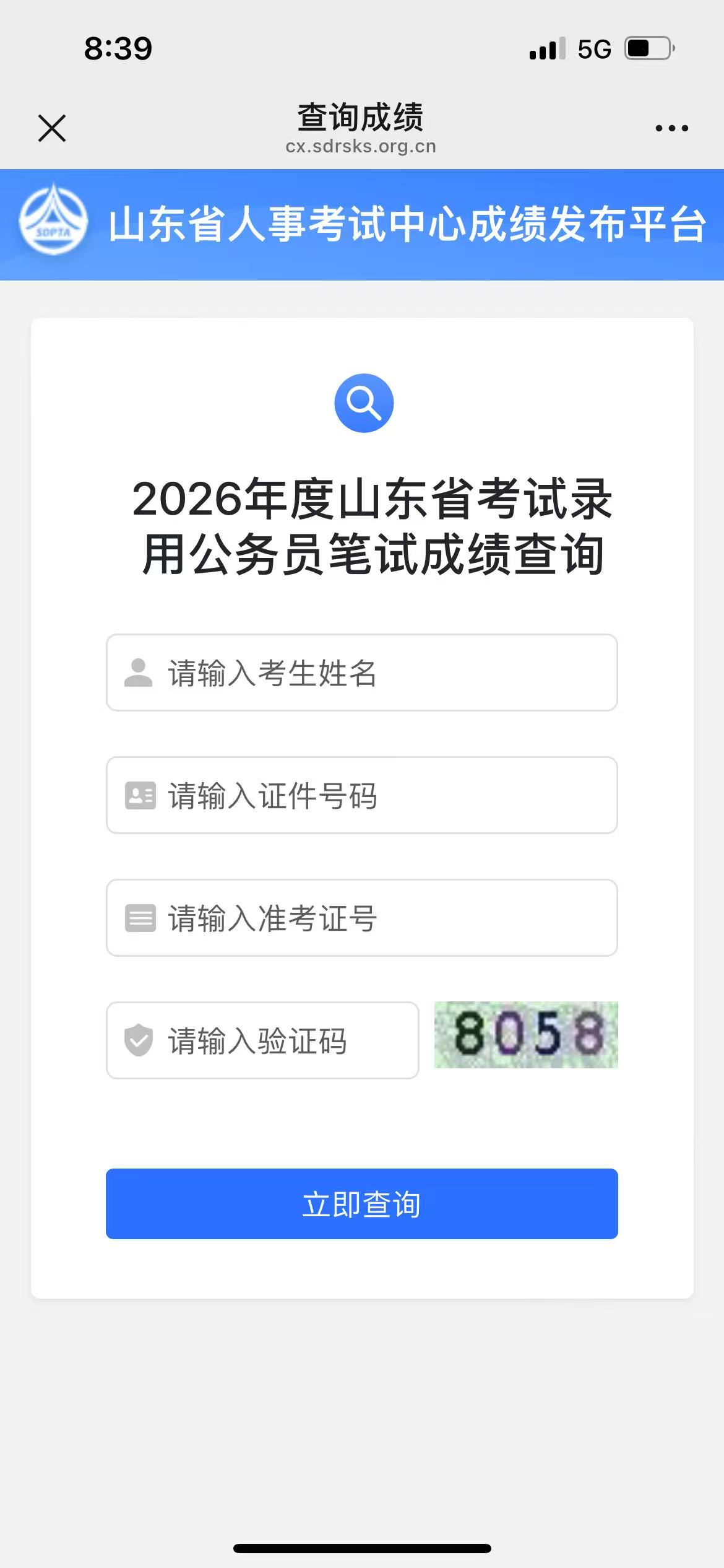 2026山东省考笔试成绩查询入口