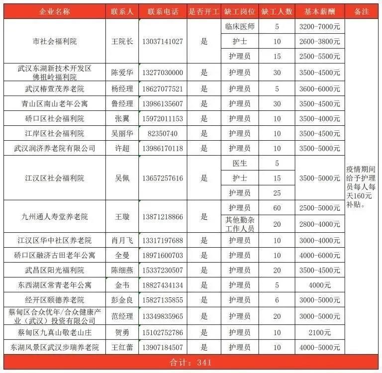 第二类缺工企业招聘第一批清单(养老机构)