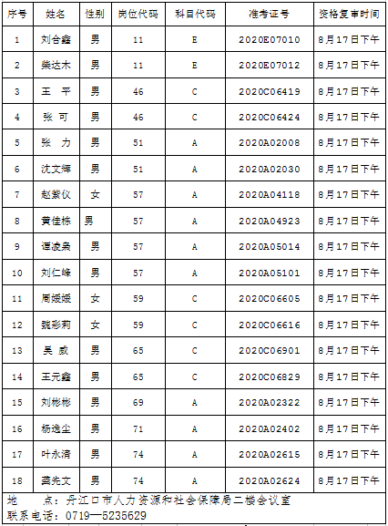 根据《2020年丹江口市事业单位公开招聘工作人员公告》规定,因个别岗位有资格复审不合格或放弃资格复审人员,经研究决定,