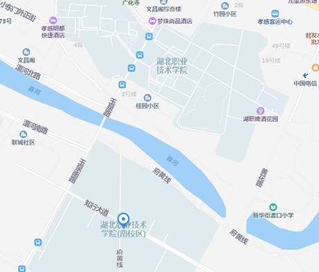 考点1:湖北职业技术学院东校区地址:湖北省孝感市孝南区玉泉路17号(如下图)