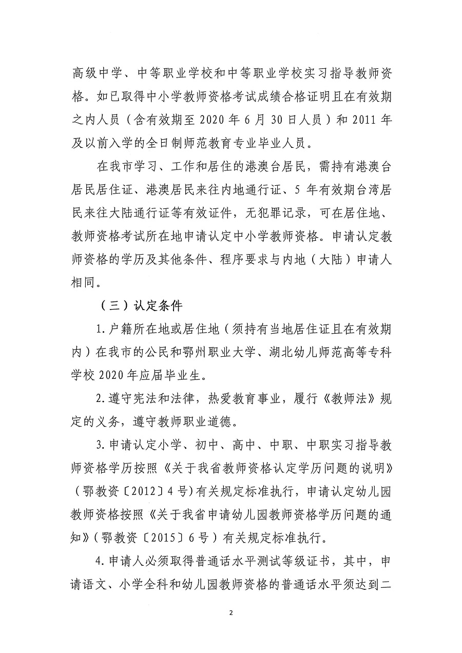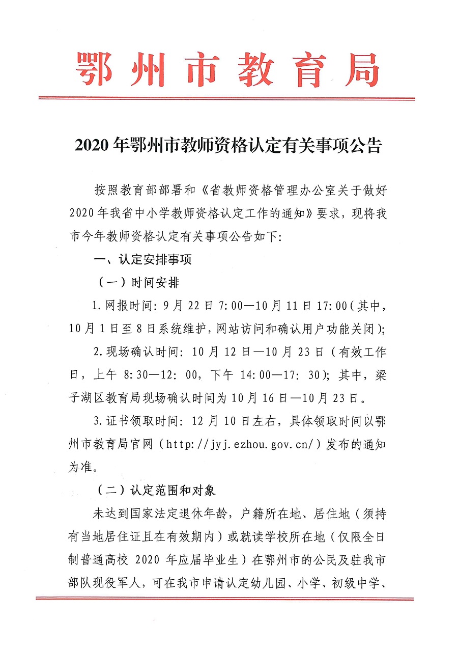 2020年秋季黄冈黄梅县教师资格认定工作公告