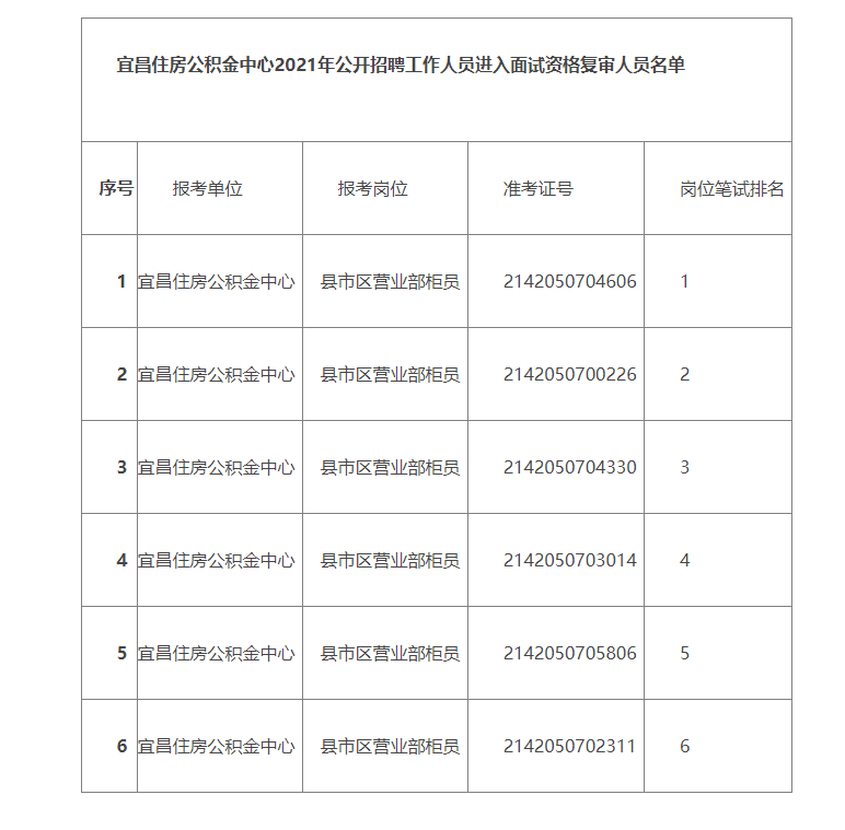 附件:《宜昌住房公积金中心2021年公开招聘工作人员进入面试资格复审人员名单》
