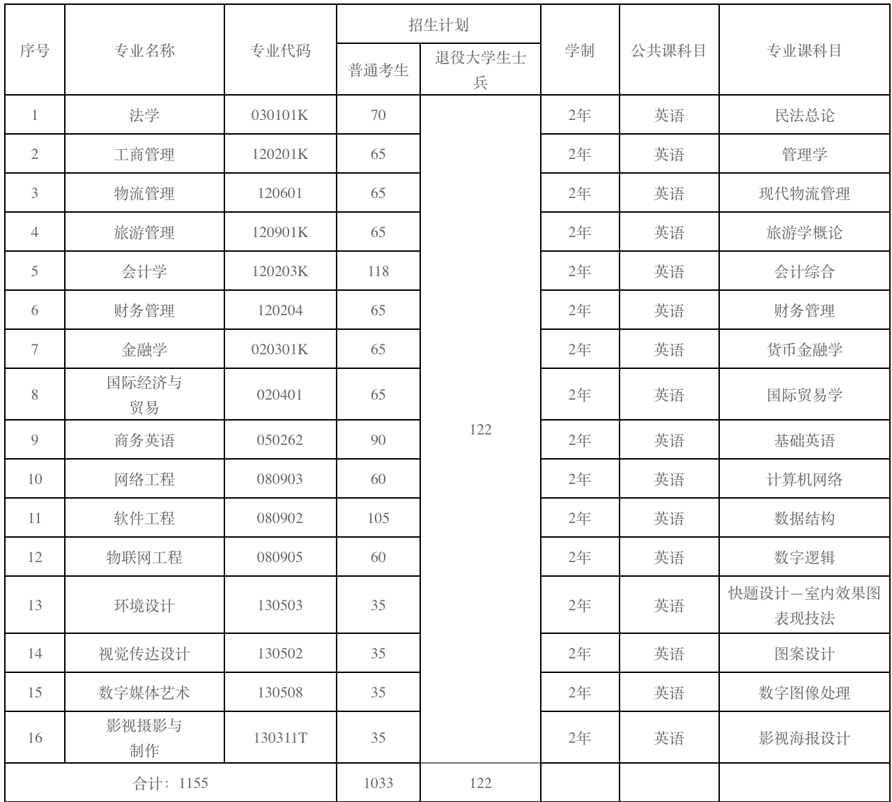 2.培养。专升本学生(含退役大学生士兵)为高等学校普通全日制学生,学制2年,相关档案需转入我校,不得采取非全日制学习形式就读,入学后不得转专业和转学。专升本学生原则上单独编班教学,确实无法单独编班的可安排插班教学。