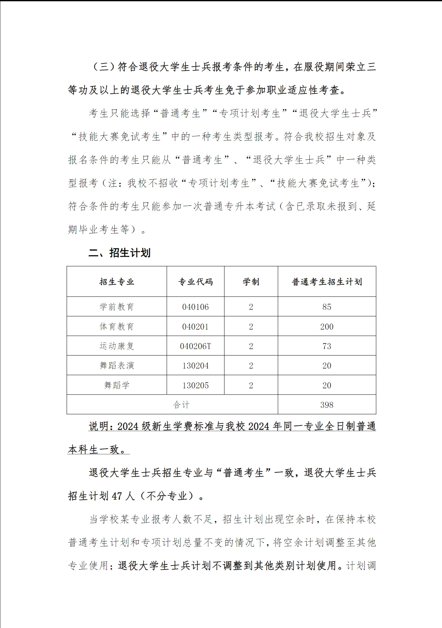 武汉体育学院体育科技学院2024年普通专升本招生简章