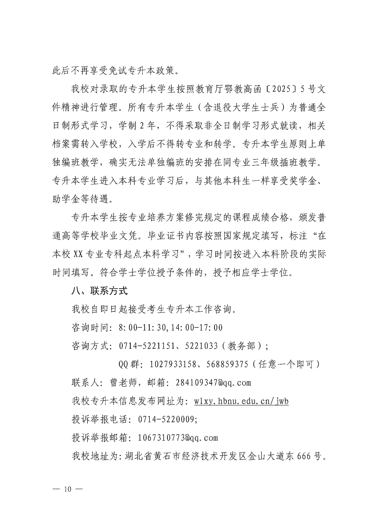 附件1.《湖北师范大学文理学院2025年普通专升本各专业招生计划》.pdf