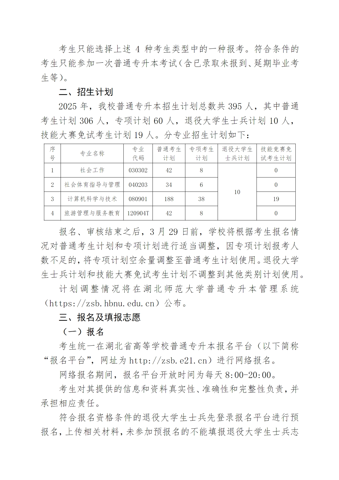 湖北师范大学2025年普通专升本招生简章