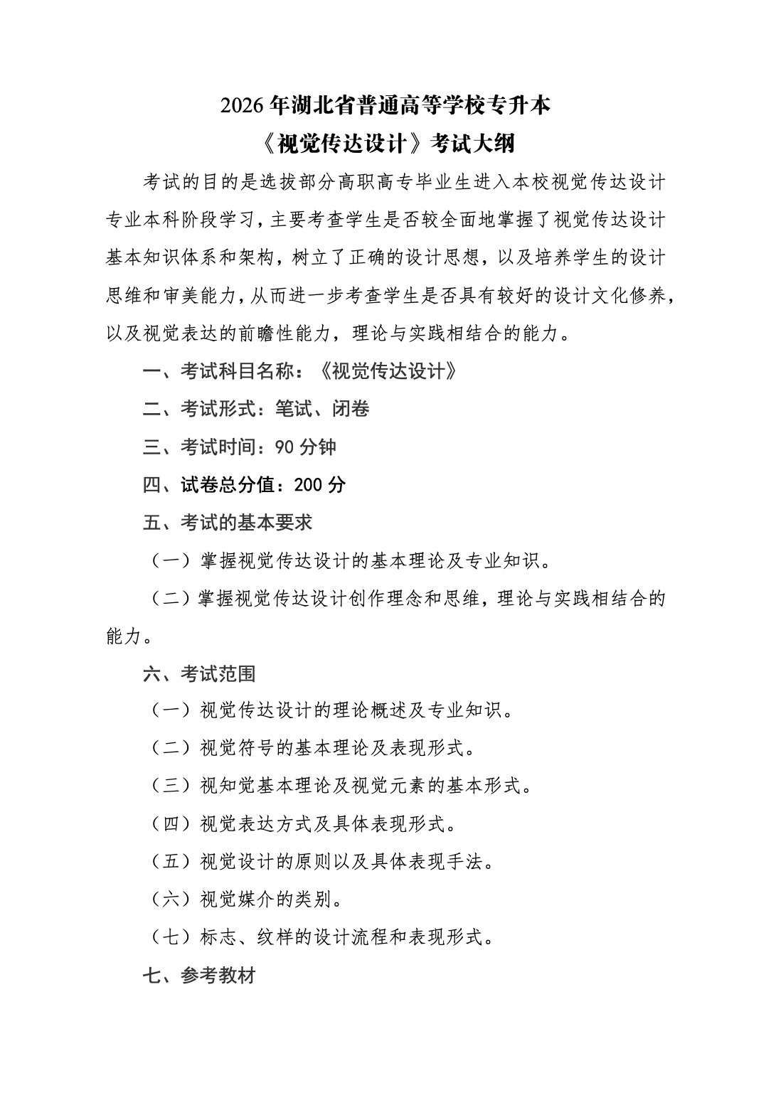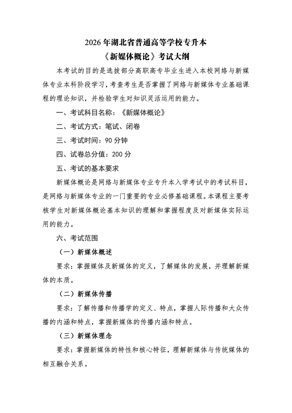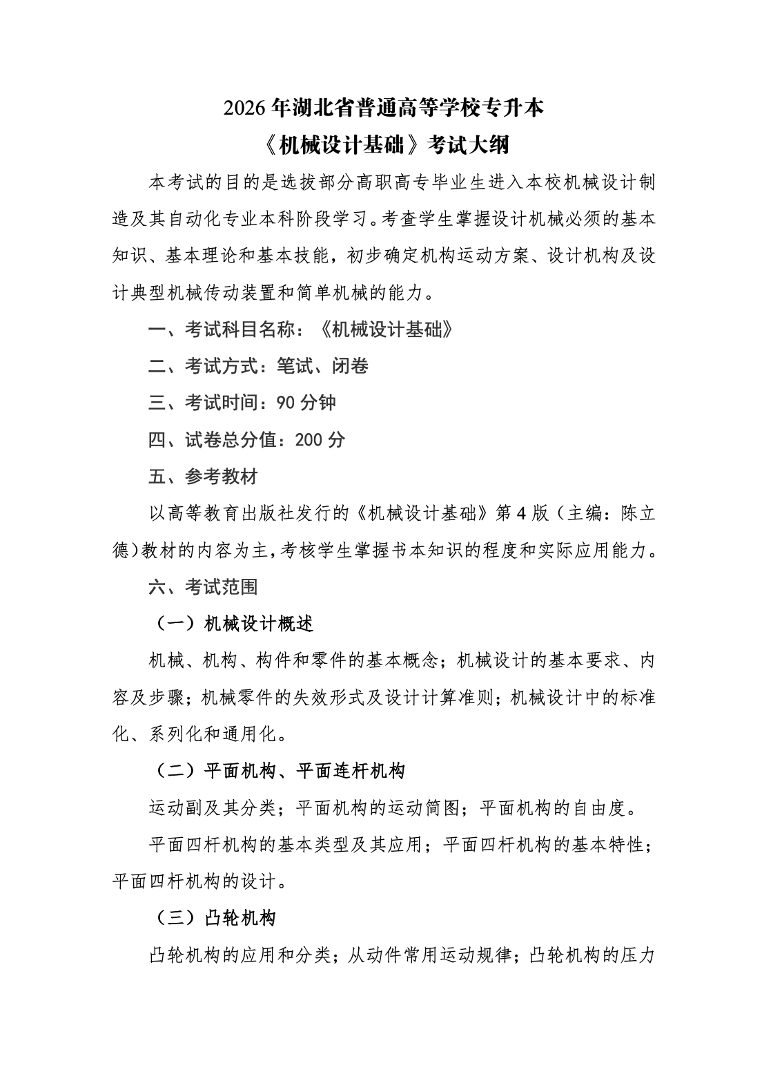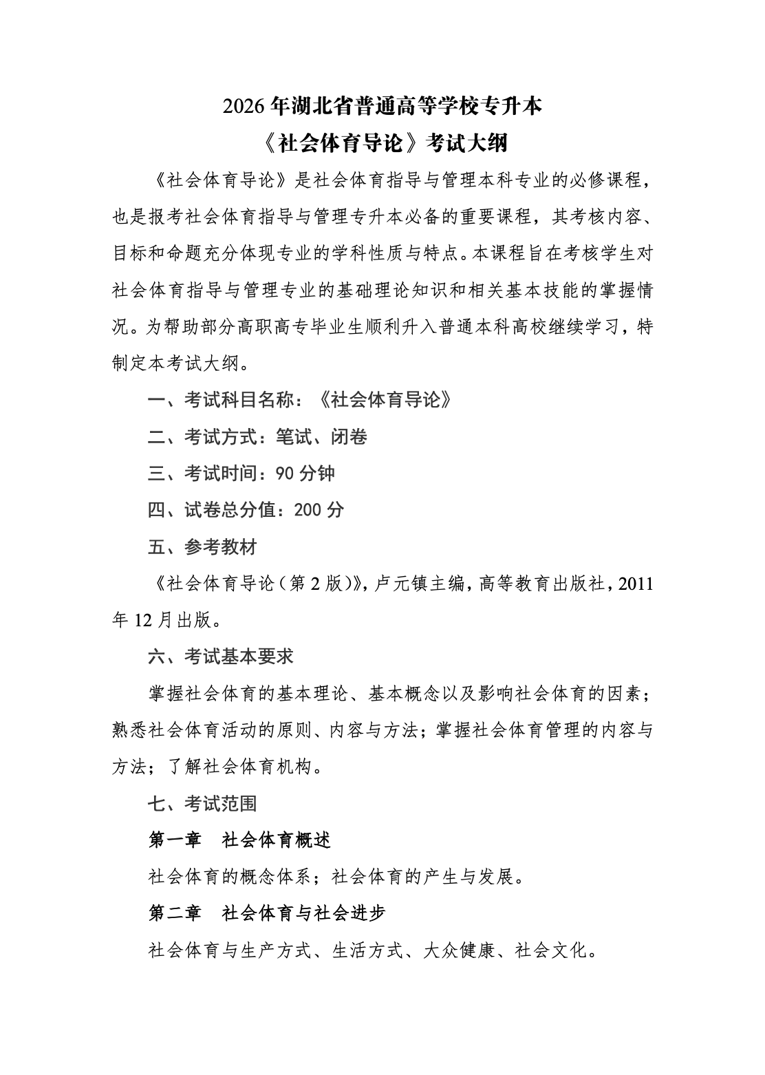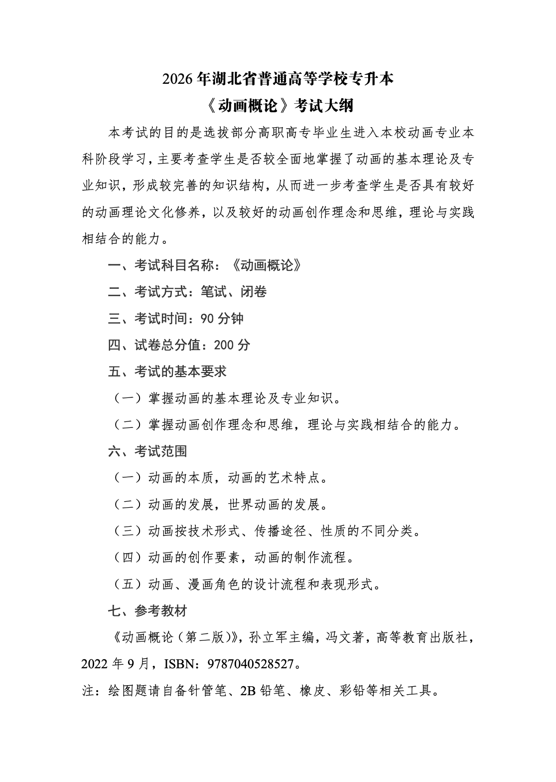 武汉文理学院2026年普通专升本专业课考试大纲