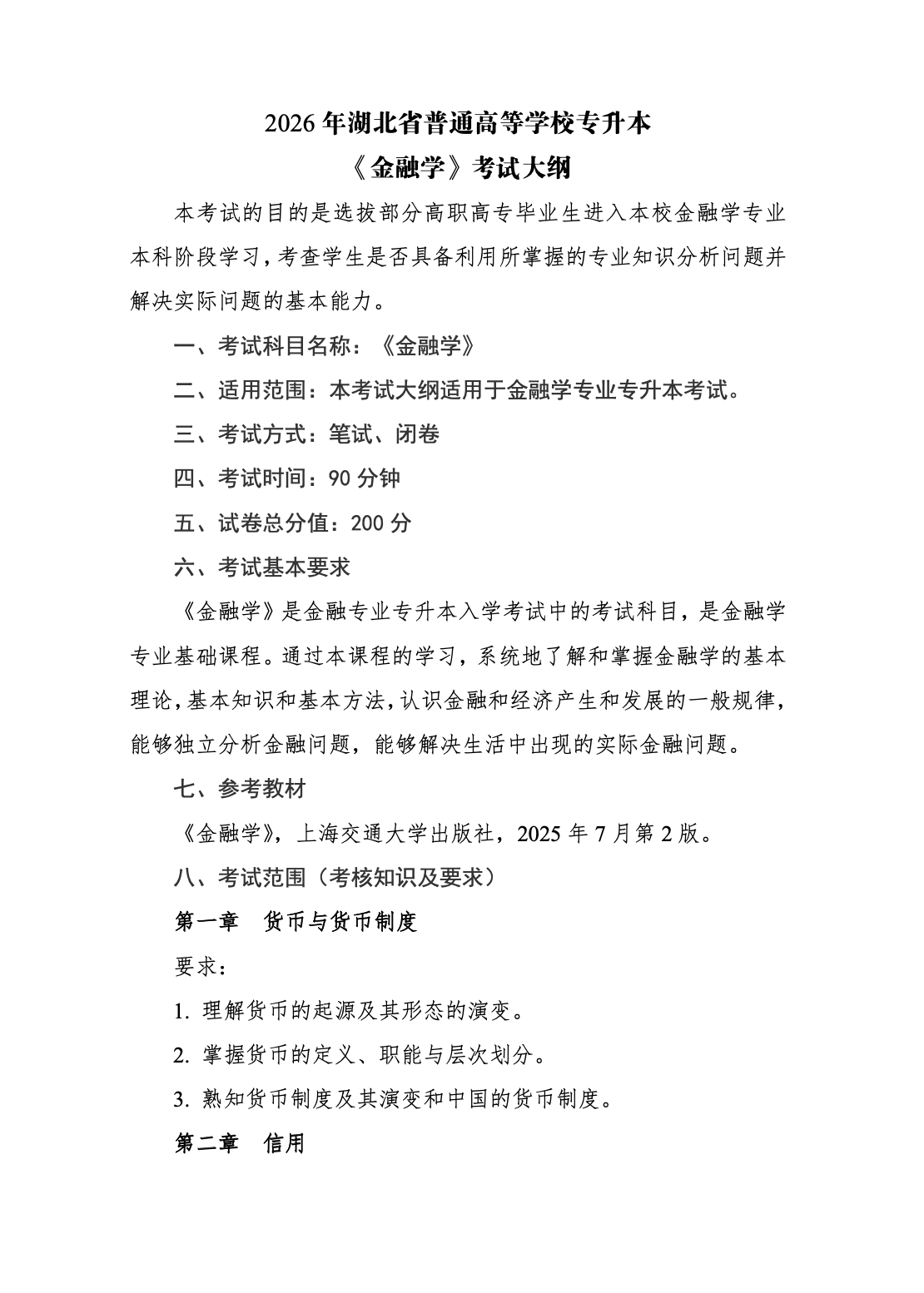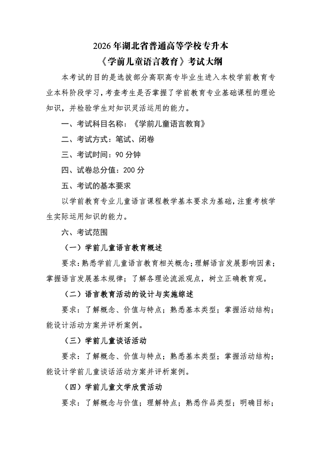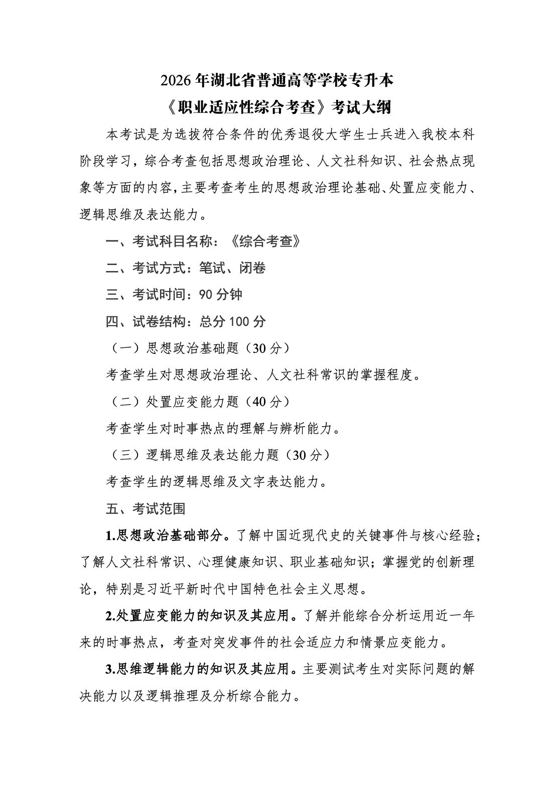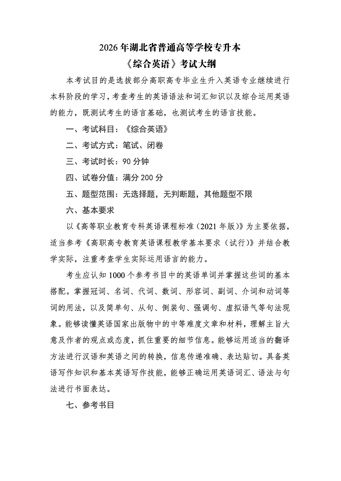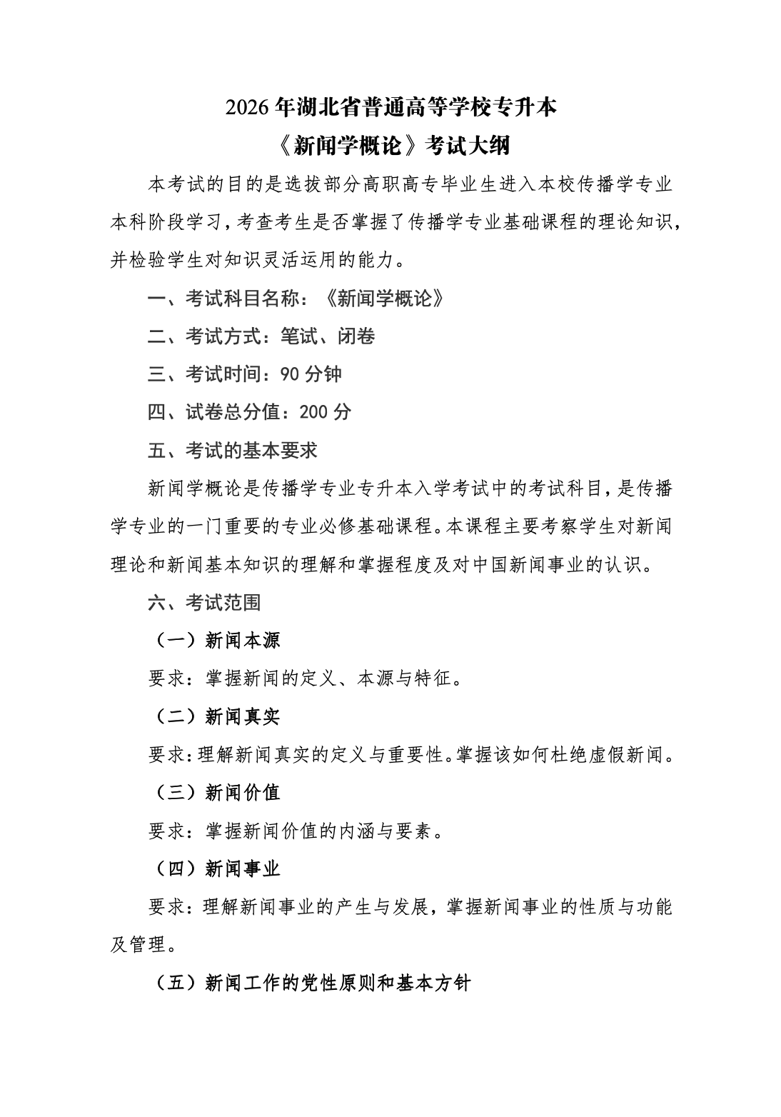 武汉文理学院2026年普通专升本专业课考试大纲