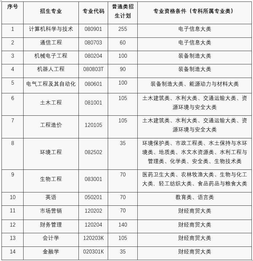 备注:我校退役士兵类招生计划数为110人,符合以上报名专业资格条件的均可报名。