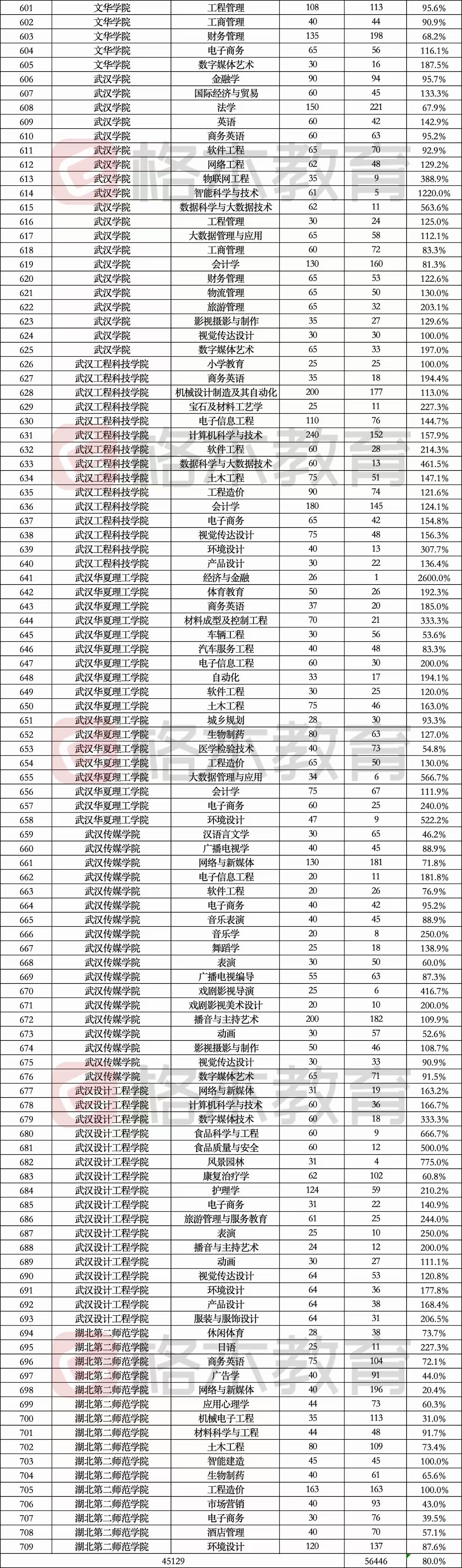 总招生人数:45129