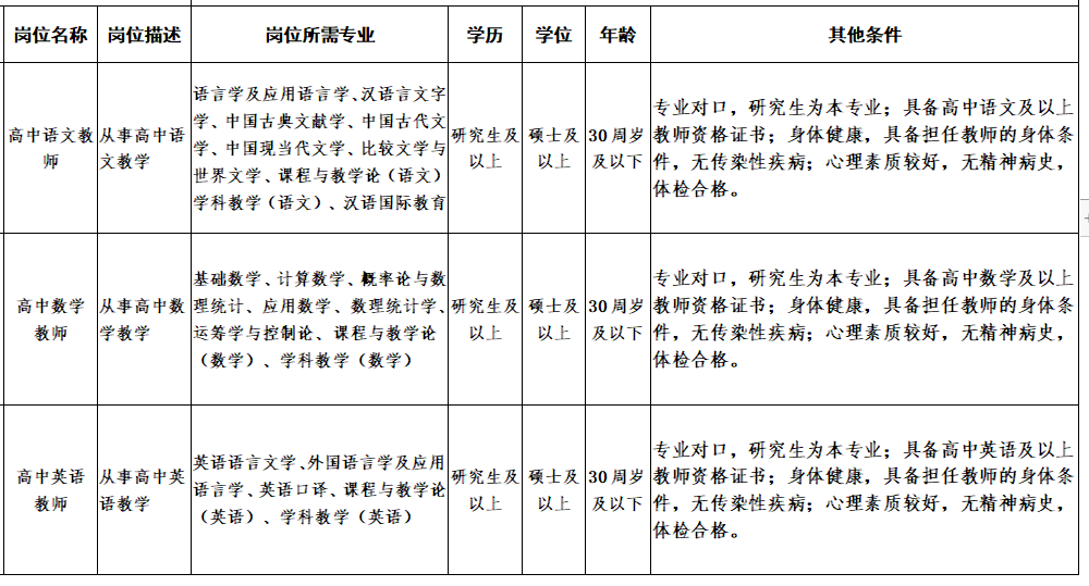 (一)人数:高中语文、数学、英语、物理、生物教师若干。